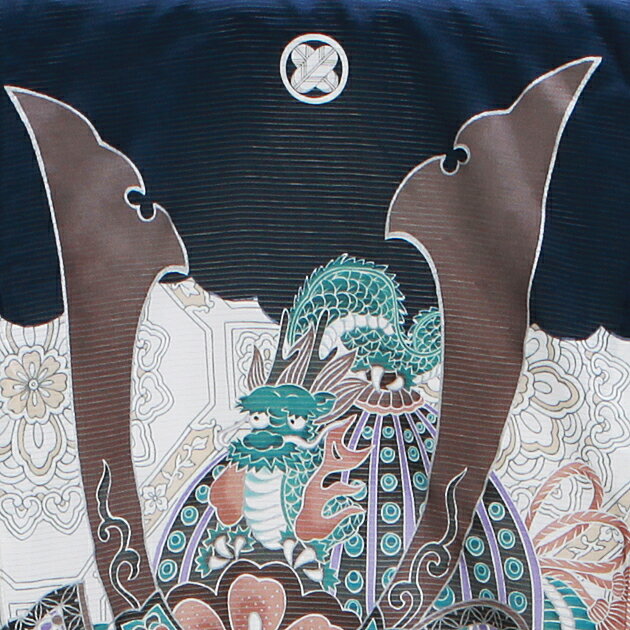 【産着-絽(6月〜9月用) 男の子】 ●表地 : 高級正絹五つ紋 ●色・柄 : 紺色/かぶと つづみ ●長襦袢 : 合成繊維 ●日本製 ※五ツ紋は、既成紋でご用意しております。