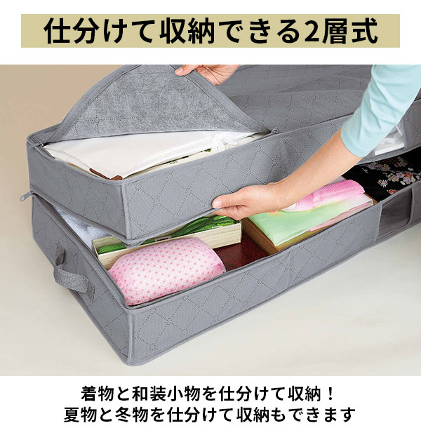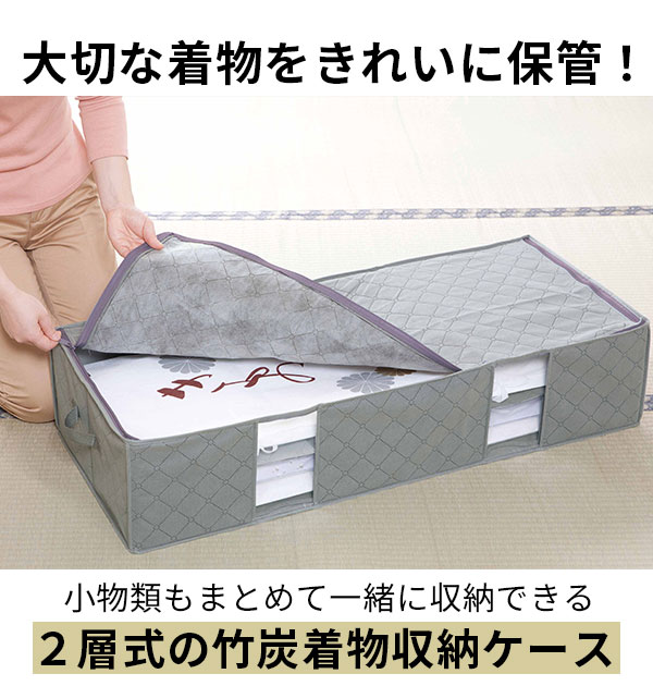 着物 収納ケース COGIT コジット 定番 二層式 2段式 着物収納 竹炭着物収納ケース2層式 衣装ケース ファスナー式 衣類収納 積み重ね 二段式 押し入れ クローゼット 夏物 冬物 不織布 和小物 保管 折りたたみ コンパクト